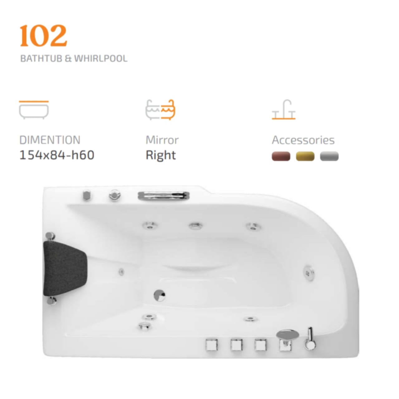 موتور و جت ها: در تیپ‌های مختلف، مجهز به موتور ۱ اسب یا ۱٫۵ اسب و جت‌های ماساژور کمر، کف و دور