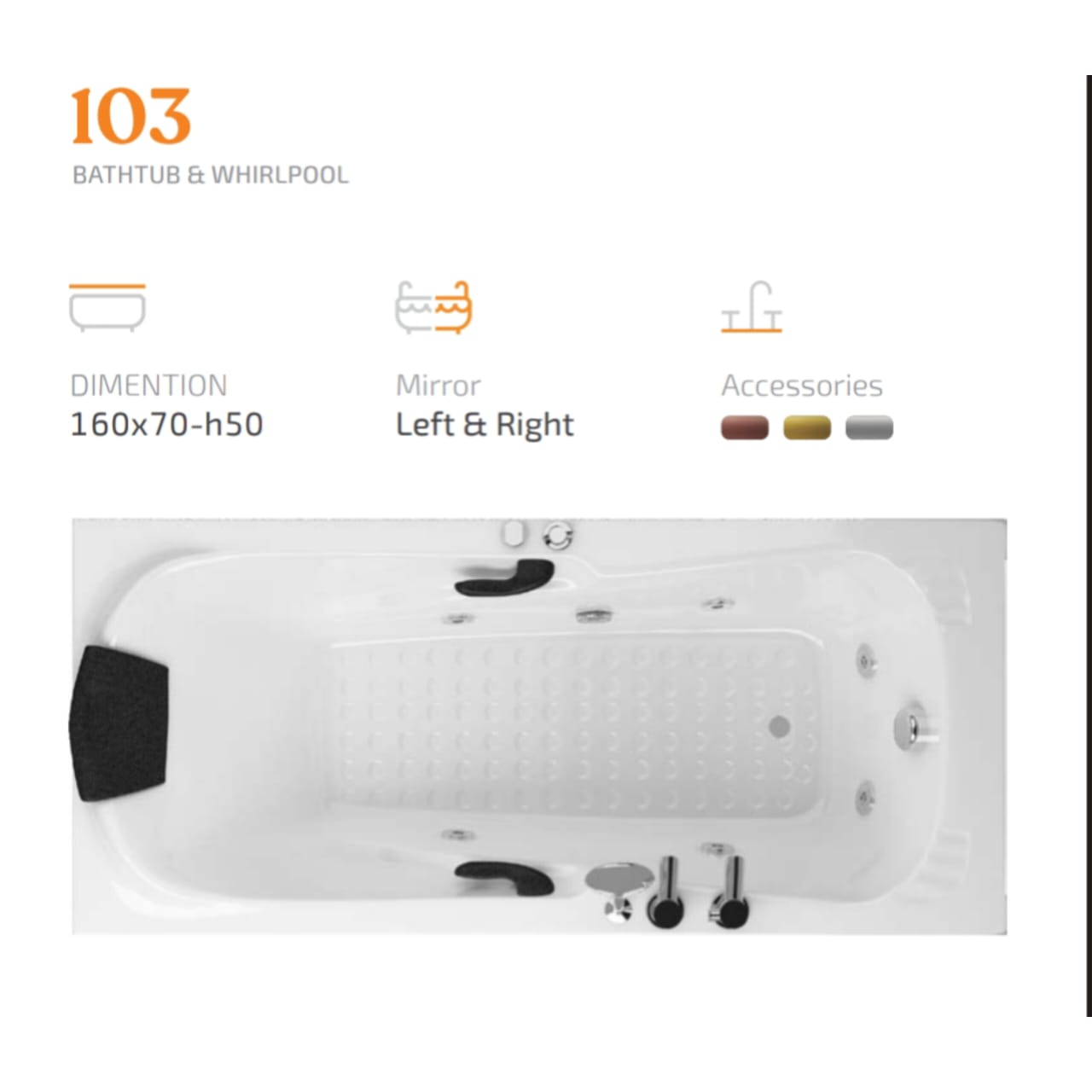 جکوزی باداب مدل 103 یک جکوزی تک‌نفره از محصولات باکیفیت شرکت باداب است که با طراحی استاندارد و متریال درجه‌یک تولید شده است. این مدل به دلیل ابعاد بهینه و طراحی ارگونومیک، گزینه‌ای ایده‌آل برای حمام‌های آپارتمانی و فضاهای کوچک محسوب می‌شود.