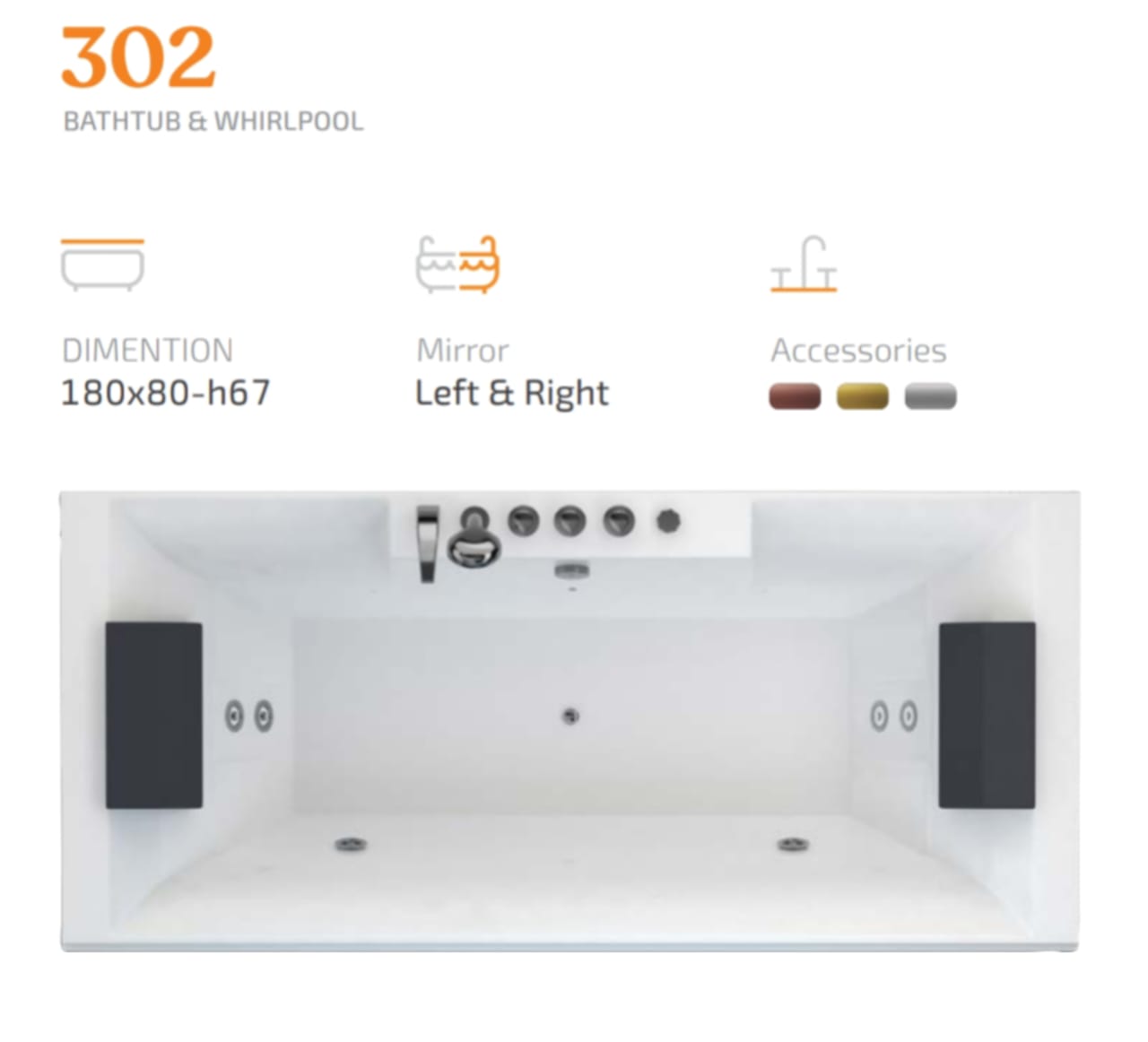 وان جکوزی باداب مدل Ba302 یک جکوزی دو نفره از این شرکت می باشد. که دارای ویژگی های مهم زیر است: